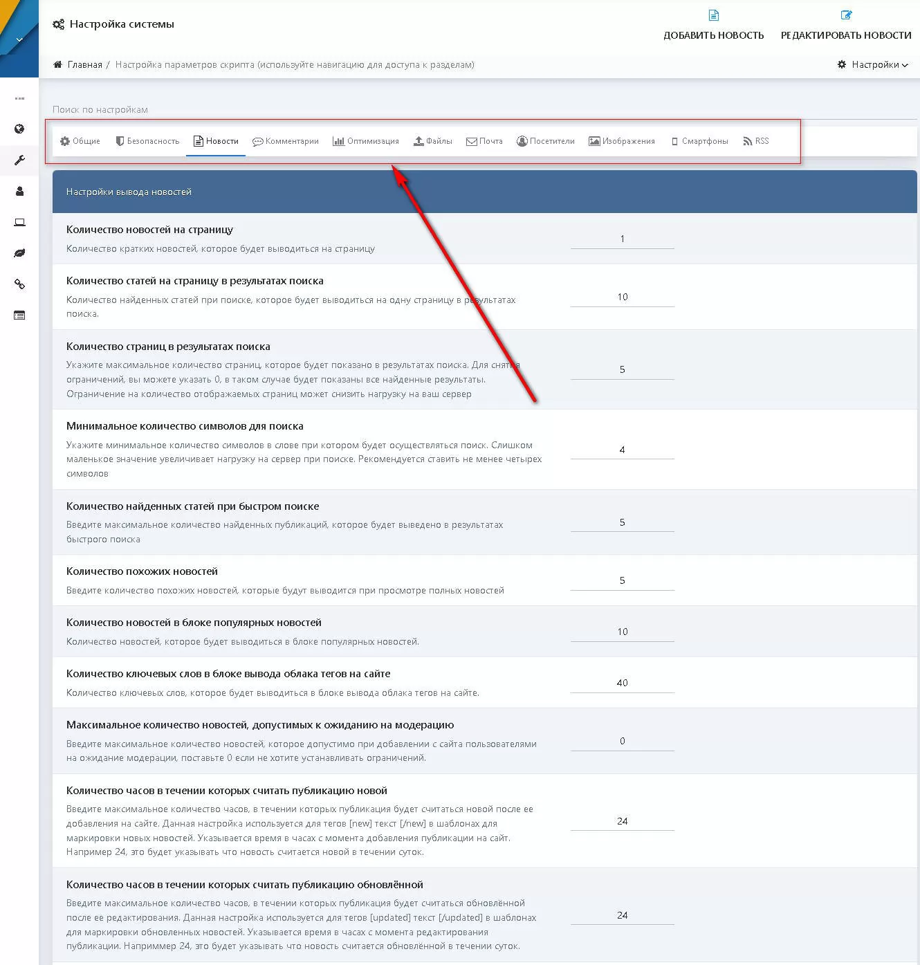 В админпанели DataLife Engine, например, в разделе движка "Настройка системы" есть одна особенность, которая выражается в том, что после нажатия кнопки сохранения настроек не запоминается активная вкладка. Особенно это бывает неудобно при частых изменениях в конфигурации. Данный модуль поможет исправить эту проблему, то есть, модуль запоминает активную вкладку во всех стандартных разделах админпанели: настройка системы; добавление/редактирование плагина; добавление/редактирование новости и т.д.